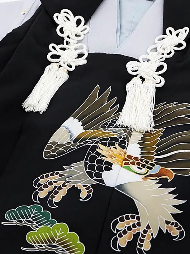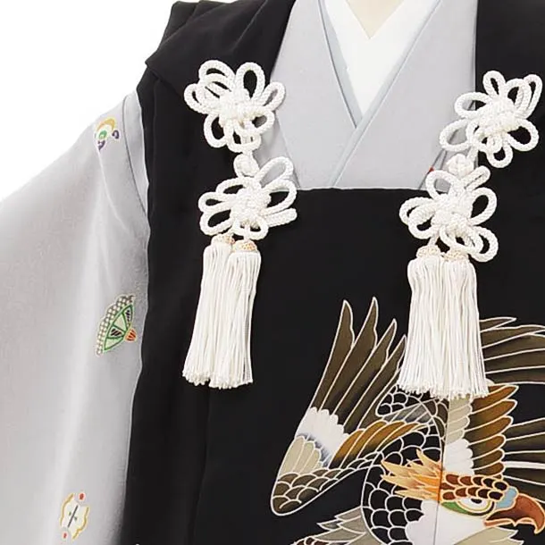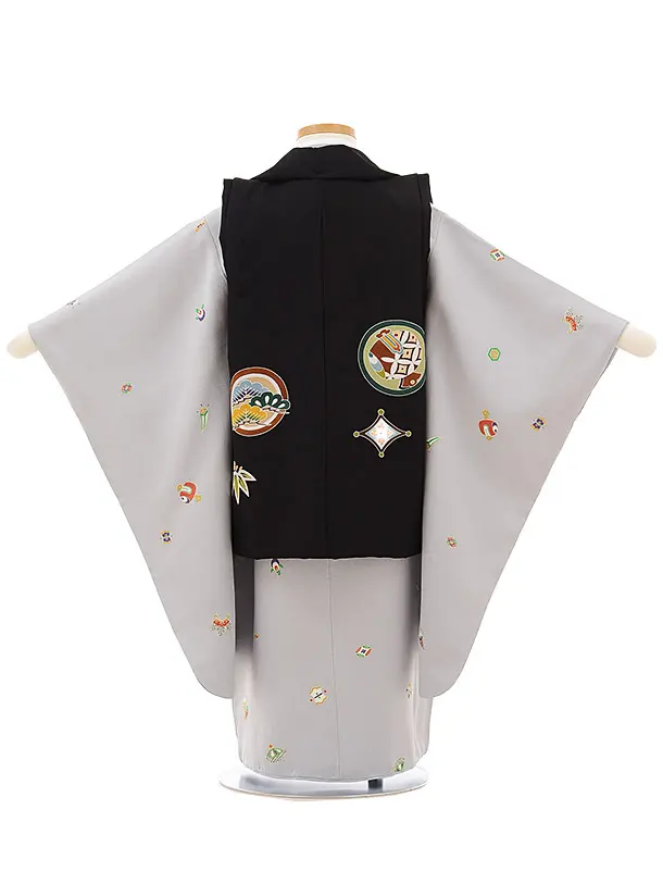 七五三レンタル(3歳男児被布)正絹2593黒地鷹x薄グレー 宝尽くし