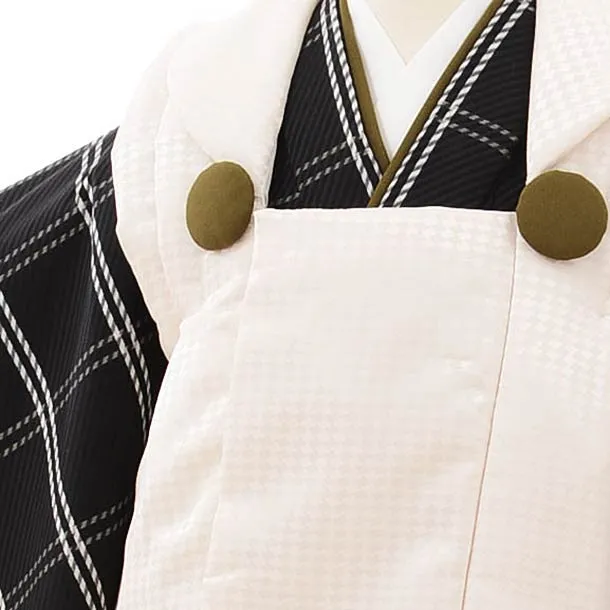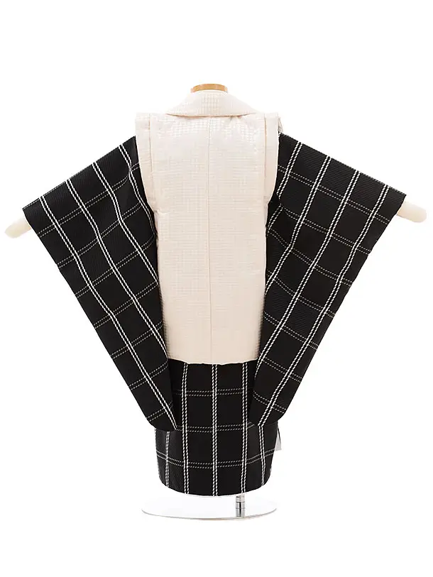 七五三レンタル(3歳男児被布)2596クリーム色x黒チェック