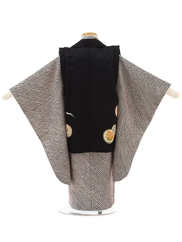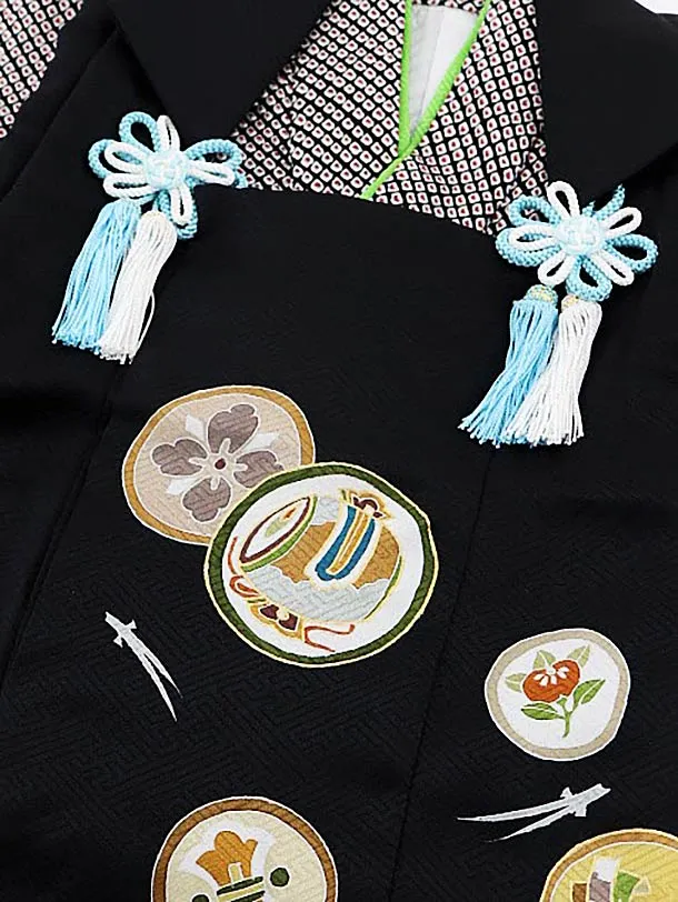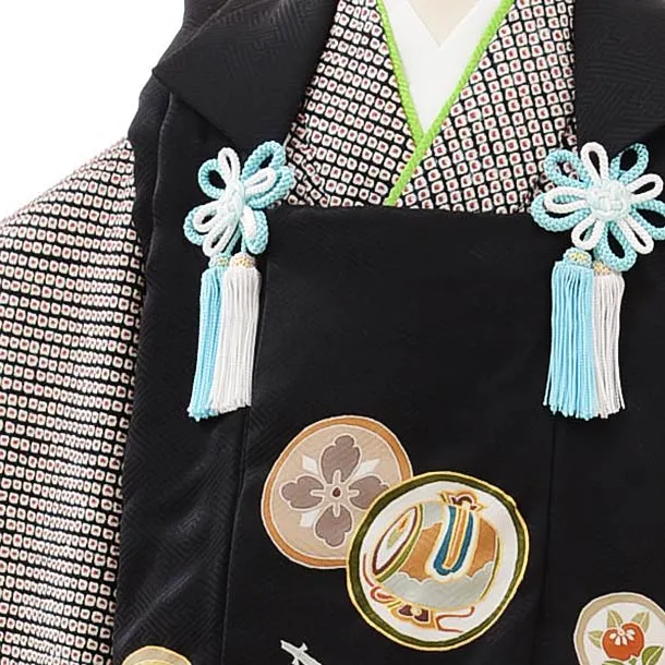 七五三(3歳男児被布)高級正絹2617黒丸紋x紺赤絞り
