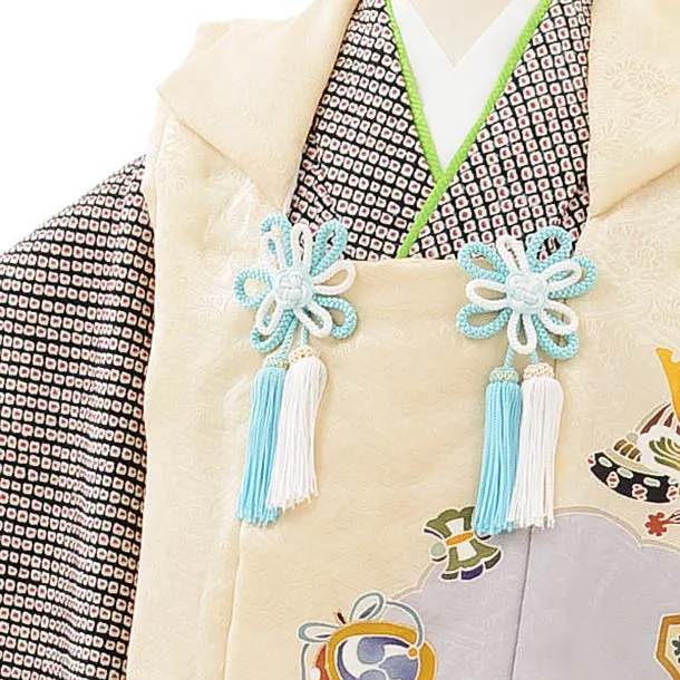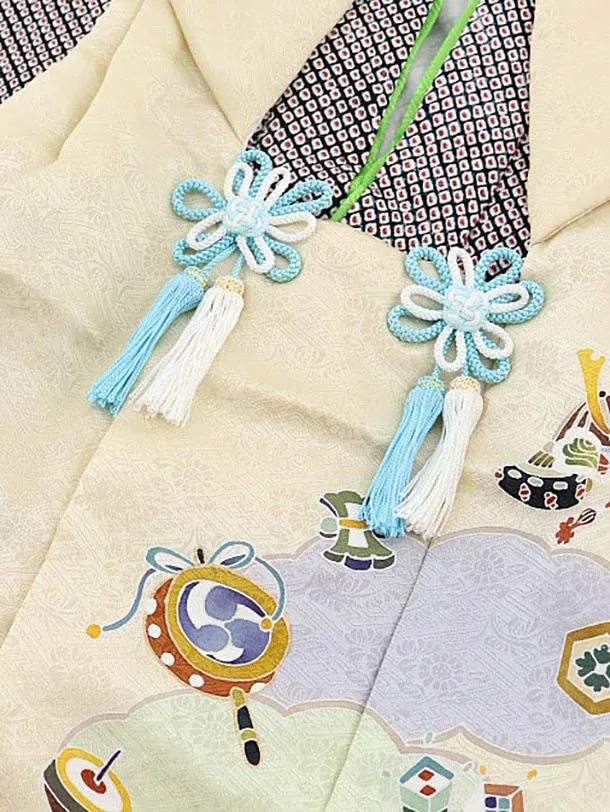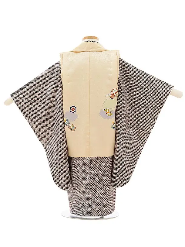 七五三(3歳男児被布)高級正絹2619ベージュ地吉祥文様x紺赤絞り
