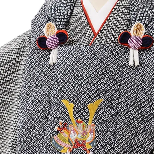 七五三レンタル(3歳男児被布)2623黒地兜刺繍x黒疋田柄