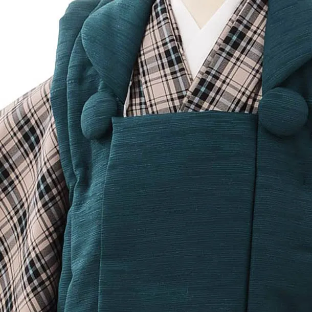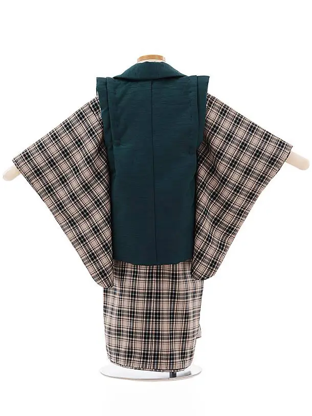 七五三レンタル(3歳男児被布)2627ブルーグリーンxベージュチェック