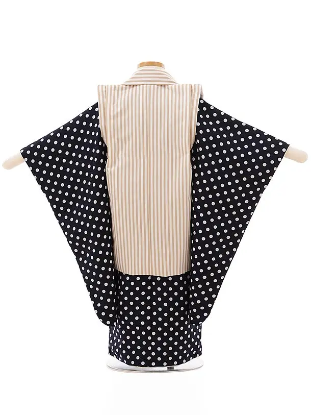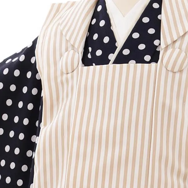 七五三レンタル(3歳男児被布)2632花わらべ ベージュストライプx紺白ドット