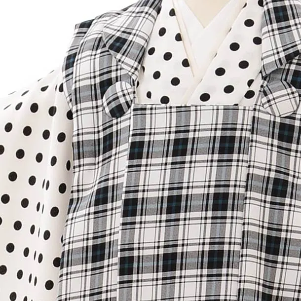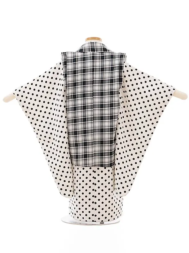七五三レンタル(3歳男児被布)2633花わらべ 白紺チェックx白黒ドット
