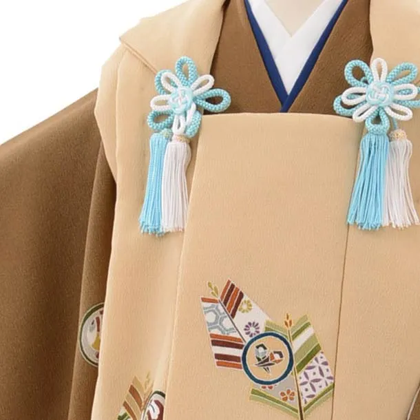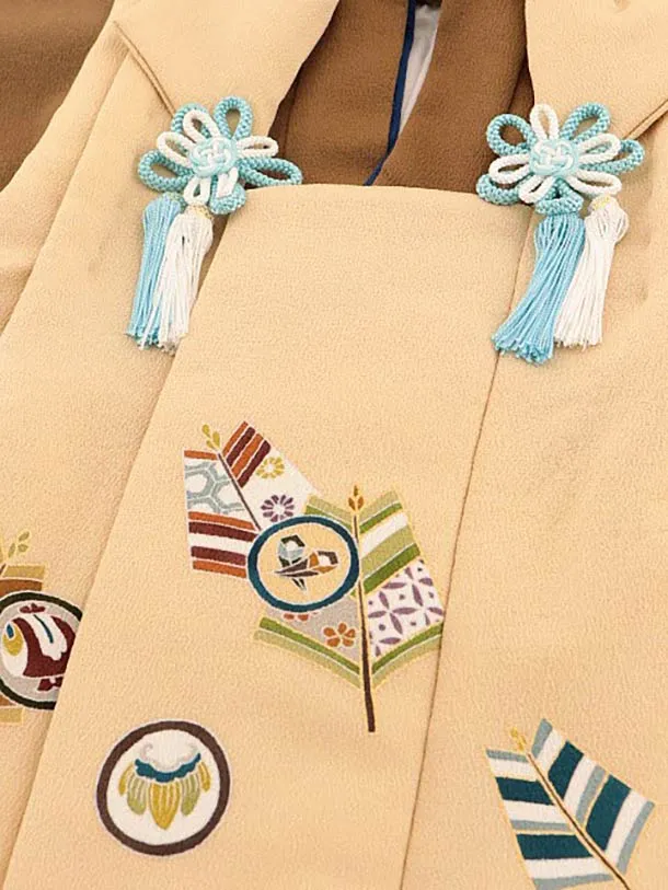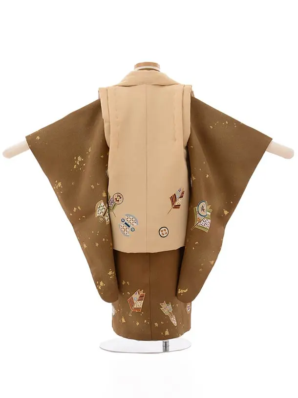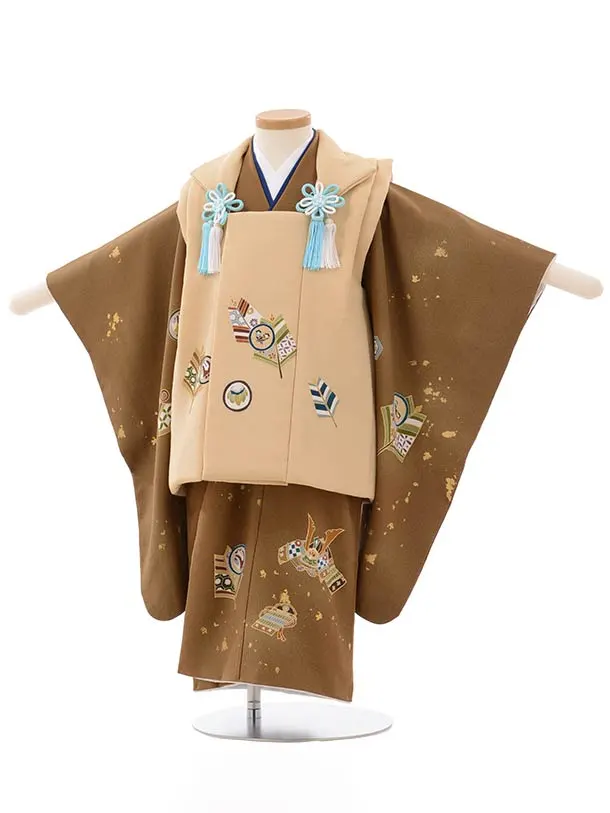 七五三レンタル(3歳男児被布)2637高級正絹ベージュx金茶吉祥文様