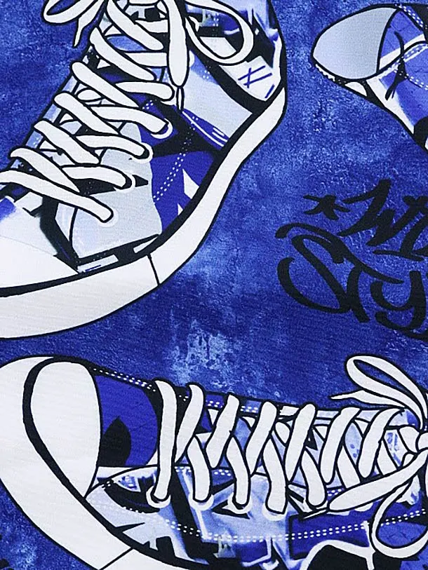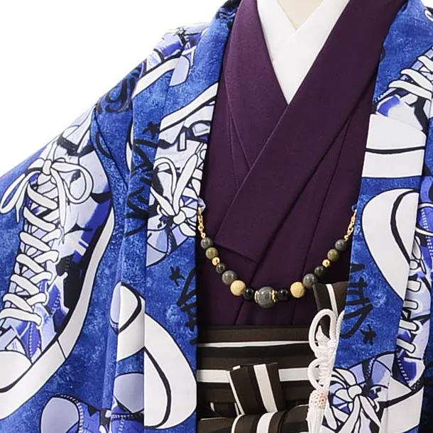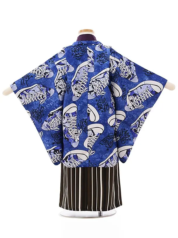 七五三レンタル(3歳,4歳男袴)2642ブルー地スニーカーxブラウンストライプ袴