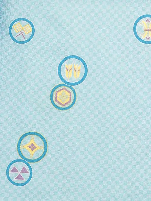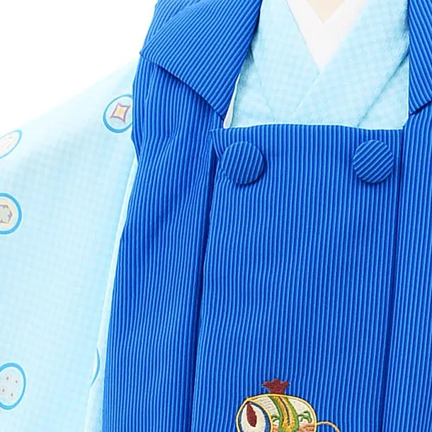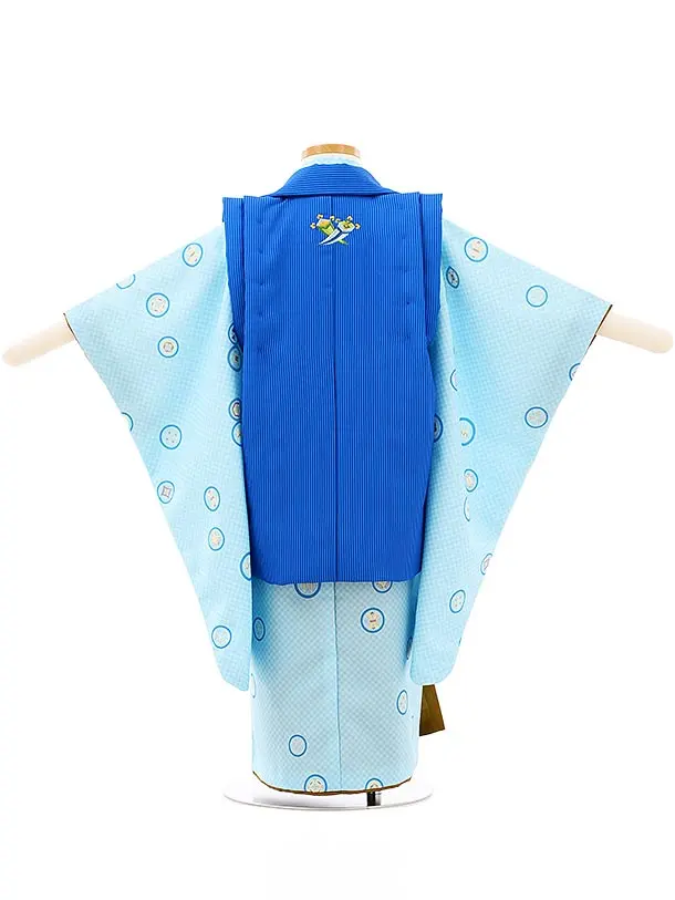 七五三レンタル(3歳男児被布)2650ブルーストライプ刺繍小槌x水色市松丸紋