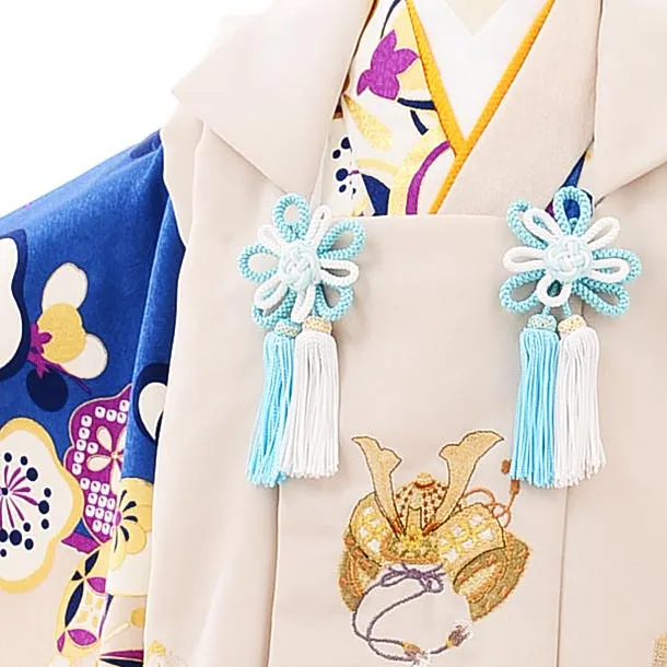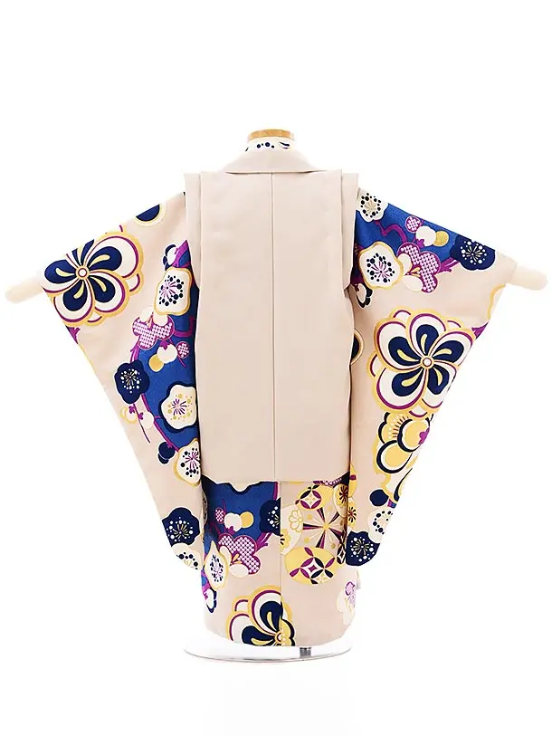 七五三レンタル(3歳男児被布)2656ベージュ刺繍兜xベージュ梅