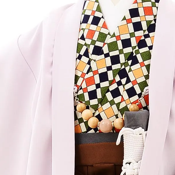 七五三レンタル(3歳,4歳男袴)2659うすパープルx茶色袴