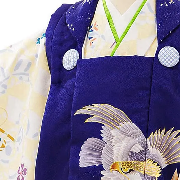 七五三レンタル(2歳男児被布)2691紺地矢羽根鷹xクリーム白おもちゃ
