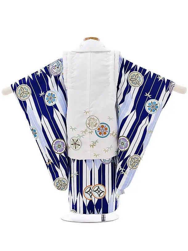 七五三レンタル(2歳男児被布)2692白地丸紋兜x紺矢柄丸紋