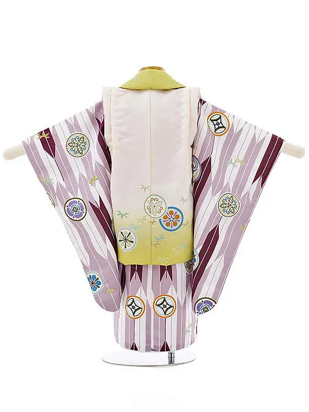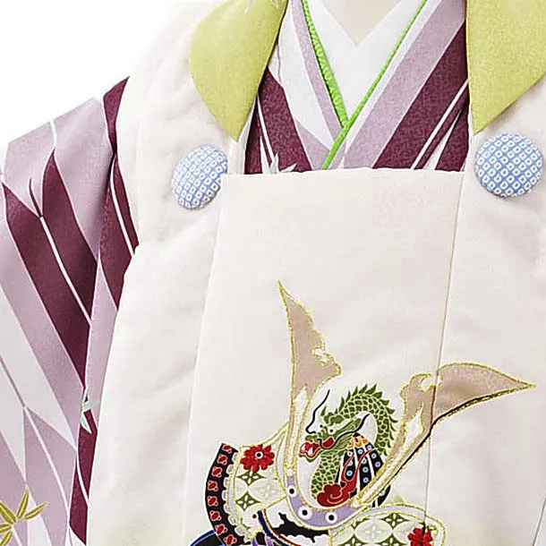七五三レンタル(2歳男児被布)2694クリームぼかし丸紋兜xパープル矢柄丸紋