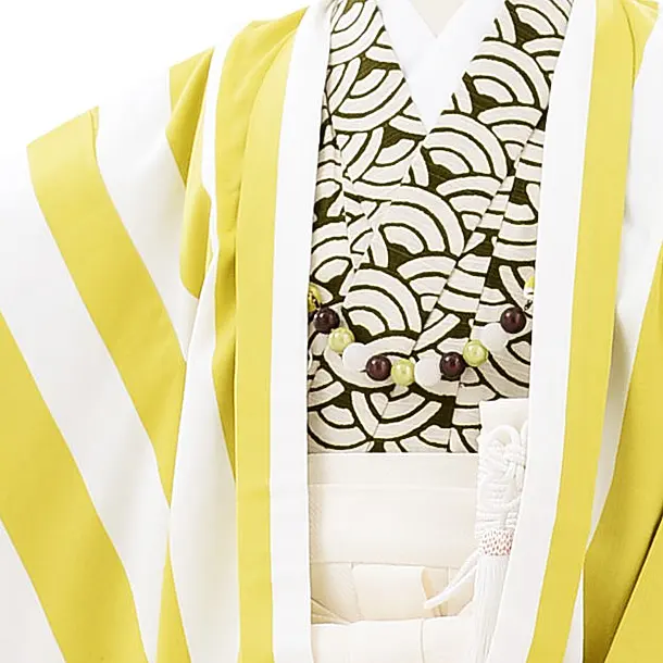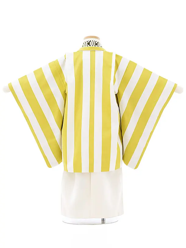 七五三(3歳,4歳男袴)2695 SABINUKI ライムグリーン縞x白ラメ袴
