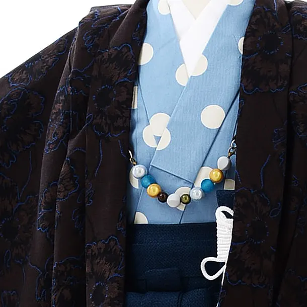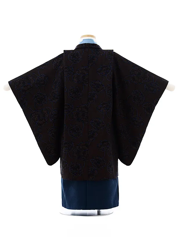 七五三(3歳,4歳男袴)2696SABINUKI ダークブラウン花x紺ラメ袴