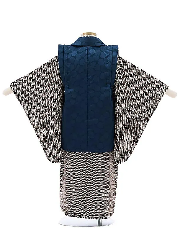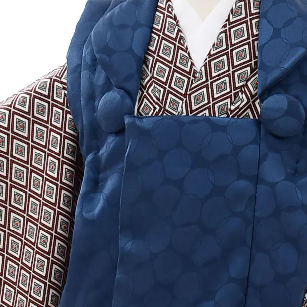 七五三レンタル(3歳男児被布)2711紺水玉x赤黒菱