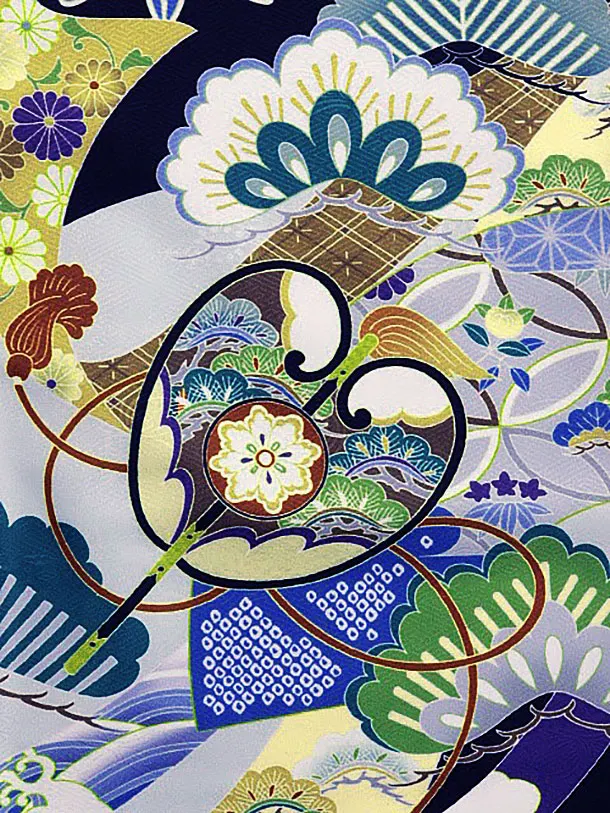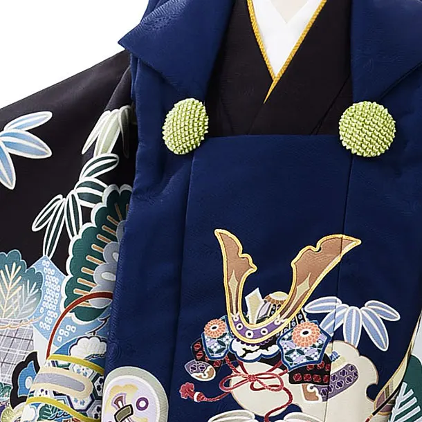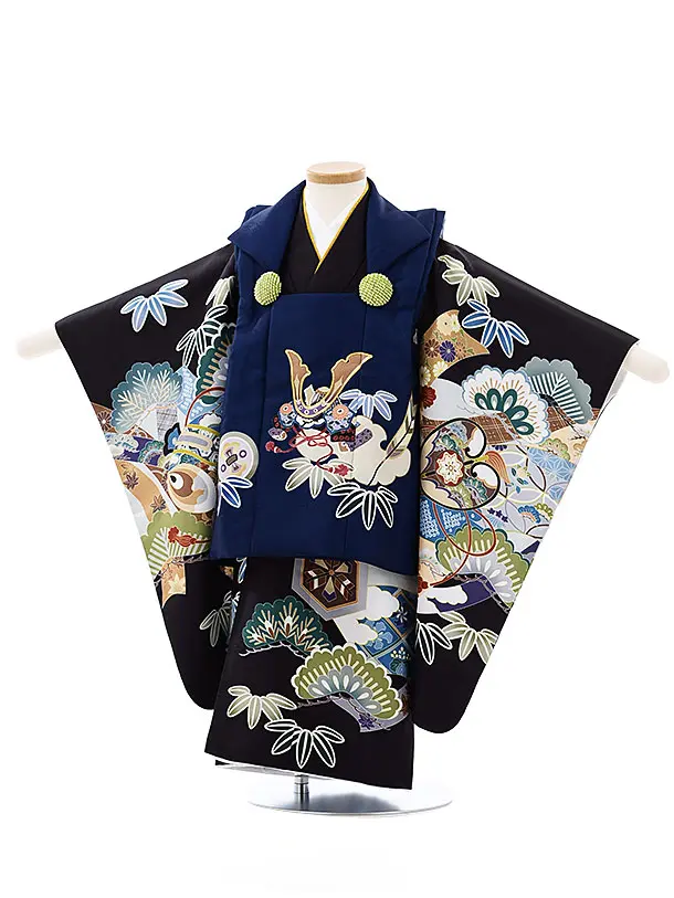 七五三レンタル(3歳男児被布)2716紺地兜x黒地吉祥文様