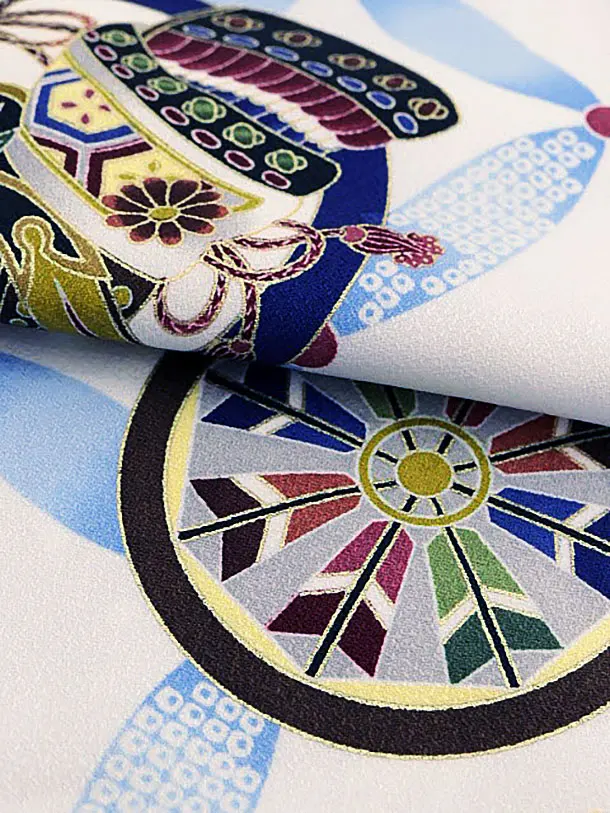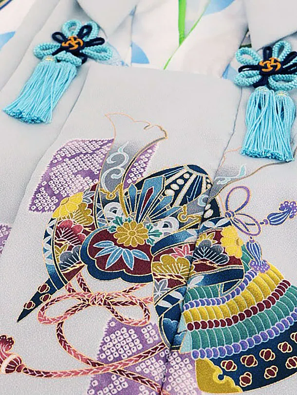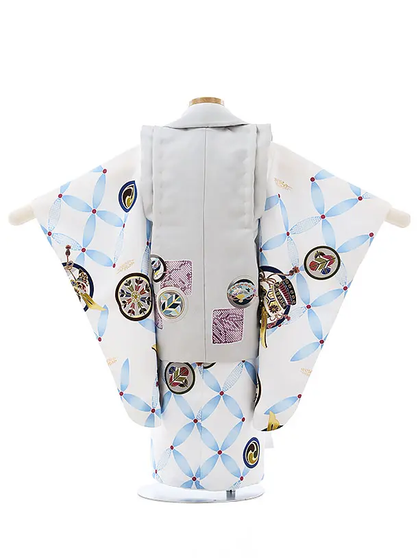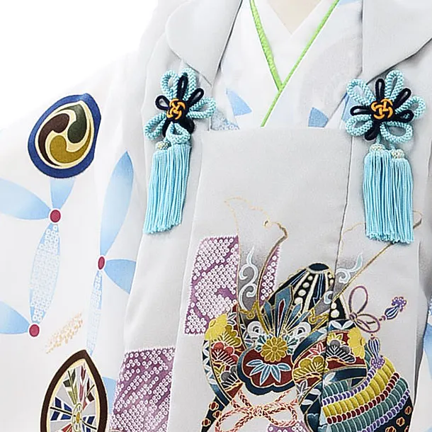 七五三レンタル(3歳男児被布)2727グレー兜x白地丸紋