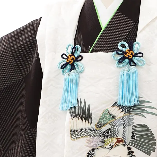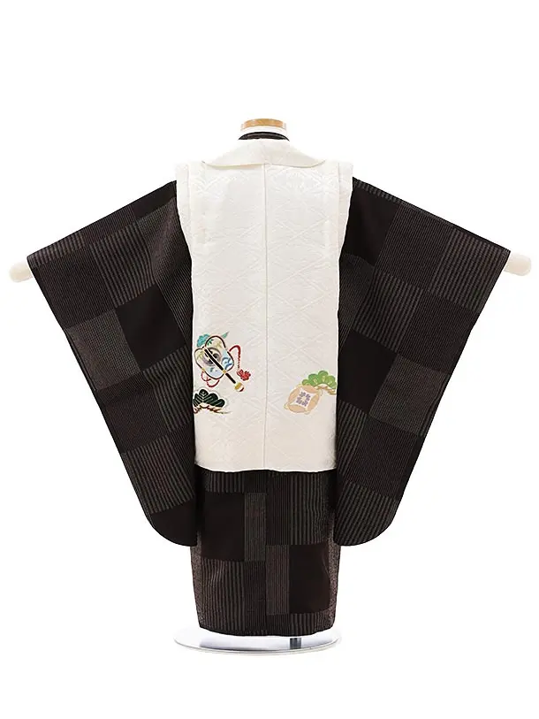 七五三レンタル(3歳男児被布)2742【正絹】ホワイト地松鷹×こげ茶色市松
