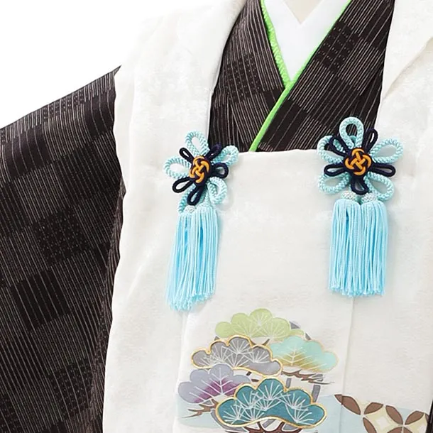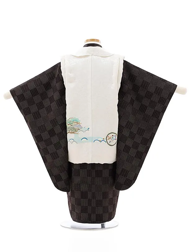 七五三レンタル(3歳男児被布)2749【正絹】ホワイト地松×こげ茶色市松