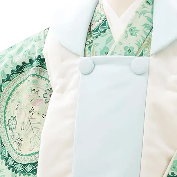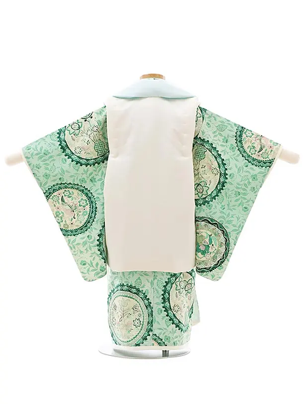 七五三レンタル(3歳男児被布)2751九重 白水色xグリーン更紗