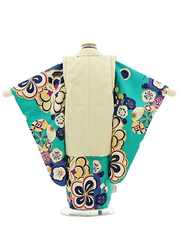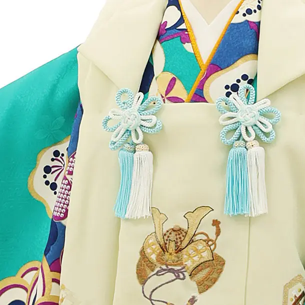 七五三レンタル(3歳男児被布)2758淡グリーン兜刺繍xターコイズ梅