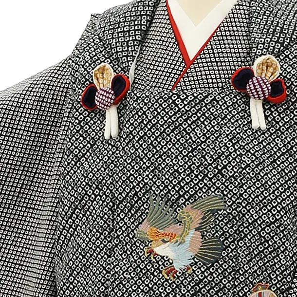 七五三レンタル(3歳男児被布)2767黒地鷹刺繍x黒地疋田柄
