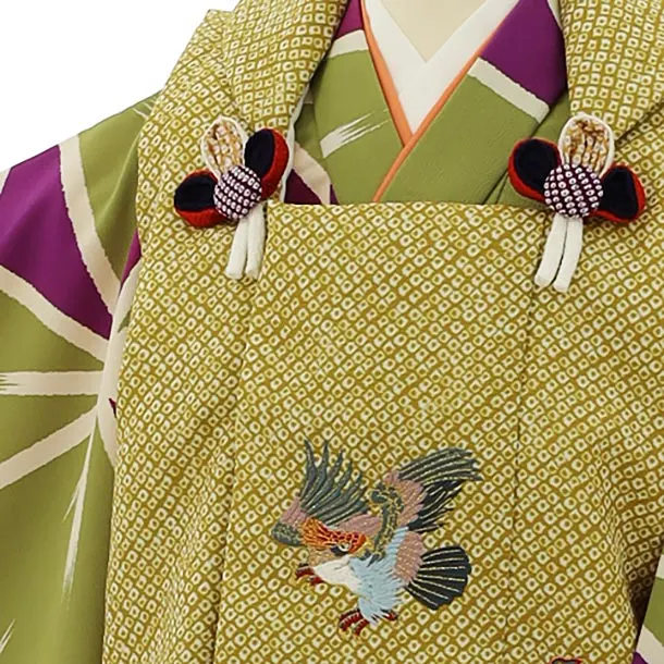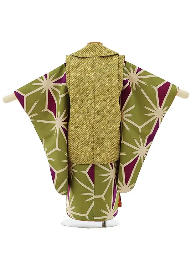 七五三レンタル(3歳男児被布)2771抹茶色鷹刺繍xグリーン変わり麻の葉柄