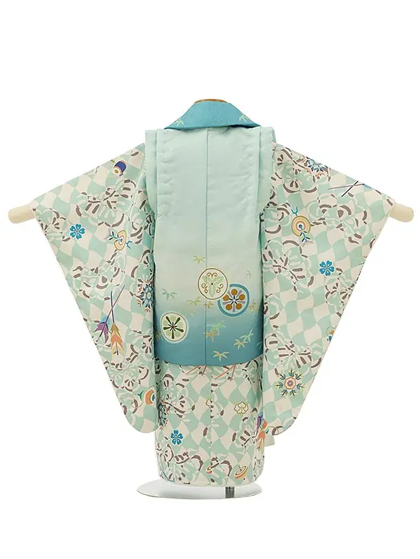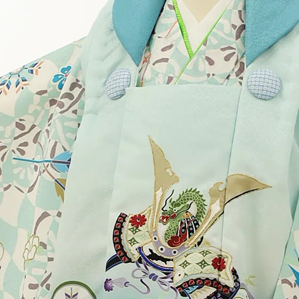 七五三レンタル(3歳男児被布)2776水色丸紋兜x水色白おもちゃ