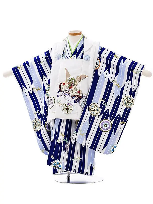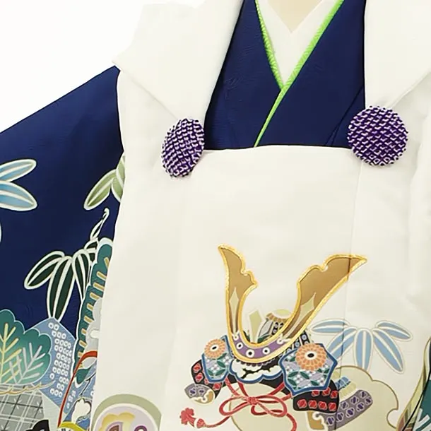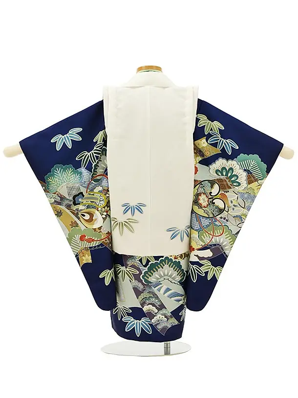 七五三レンタル(3歳男児被布)2777白兜x紺地松熨斗軍配