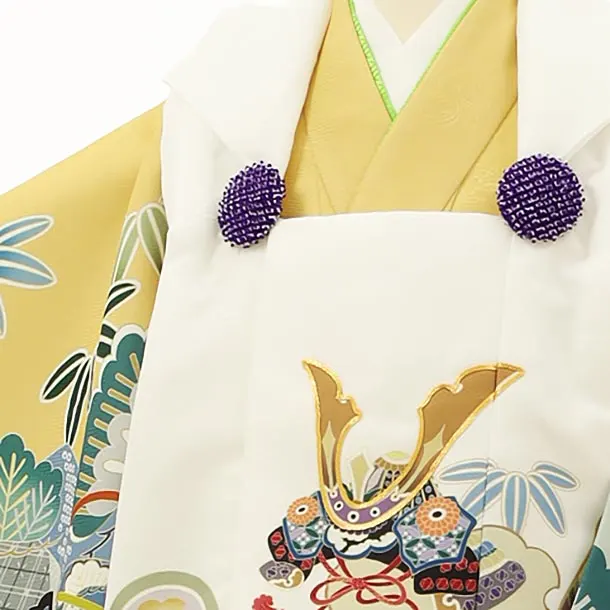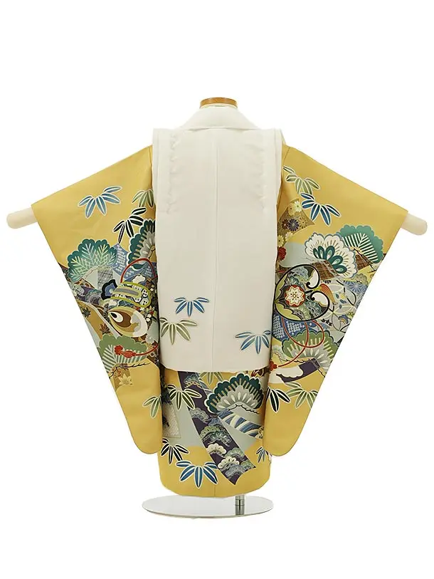 七五三レンタル(3歳男児被布)2780白兜xからし色松熨斗軍配
