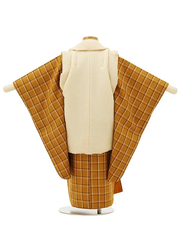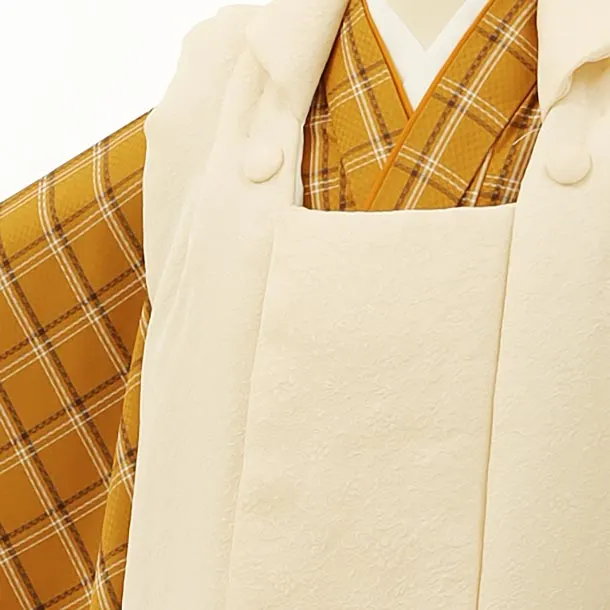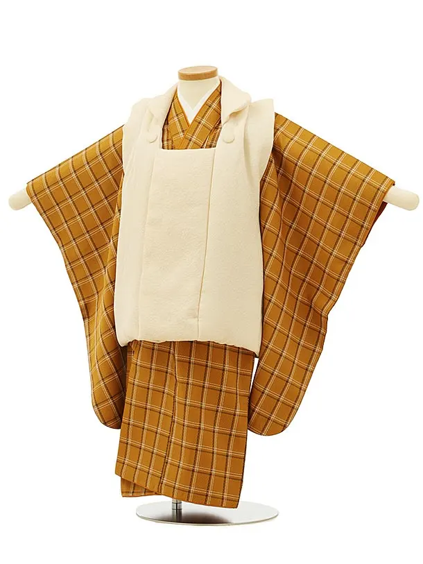 七五三レンタル(3歳男児被布)2790(正絹)アイボリーxからし色チェック
