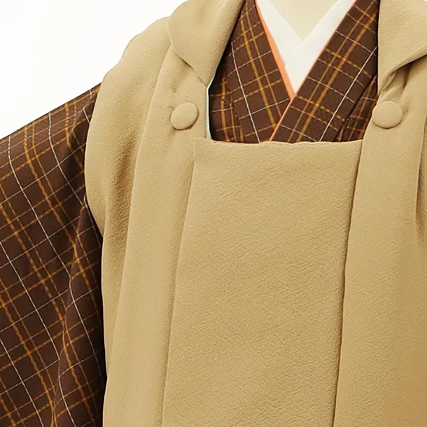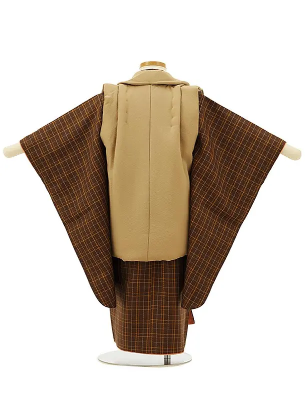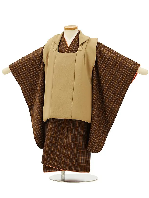 七五三レンタル(3歳男児被布)2792(正絹)ベージュxブラウンチェック