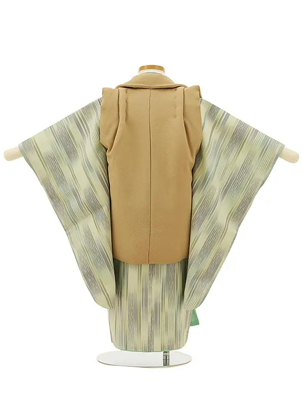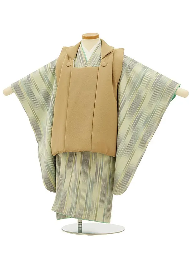 七五三レンタル(3歳男児被布)2793(正絹)ベージュxペールグリーンかすれ柄