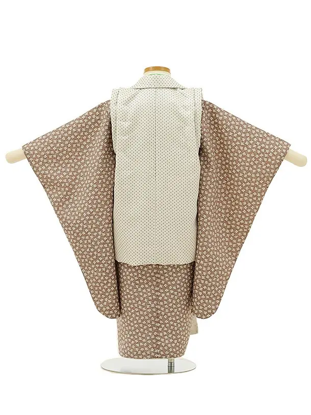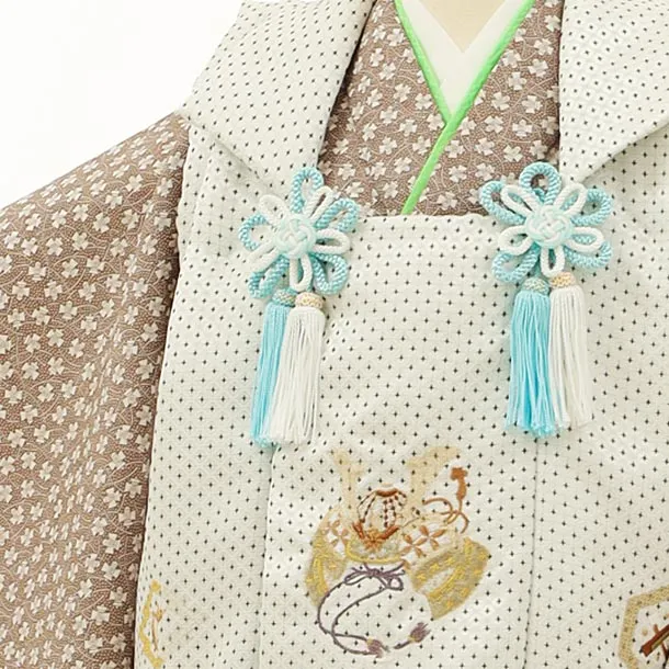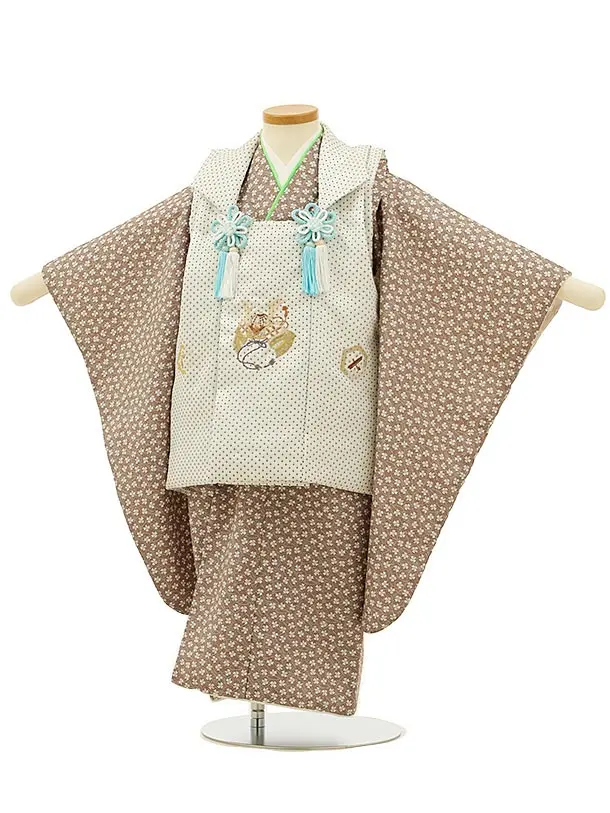 七五三レンタル(3歳男児被布)2794白地刺繍兜xうす茶