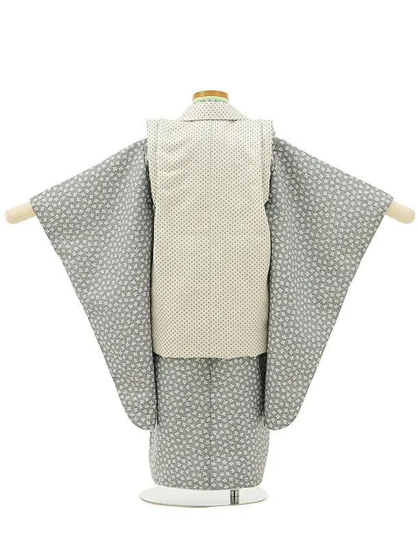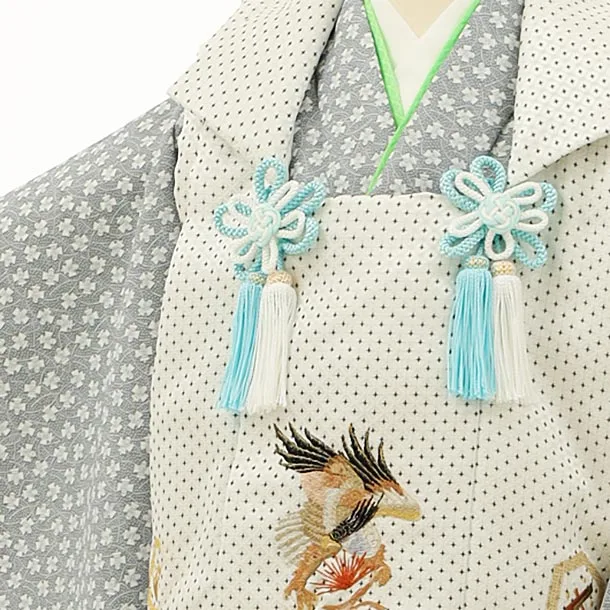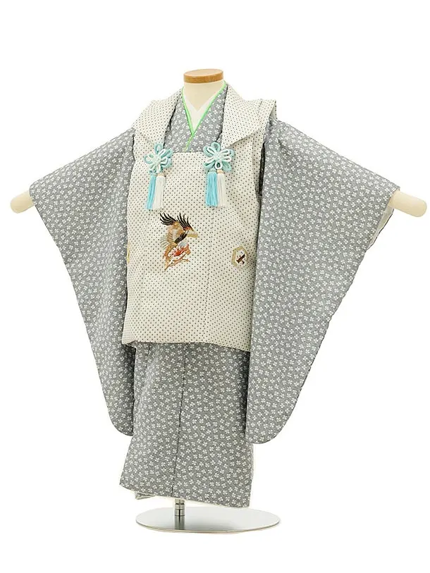 七五三レンタル(3歳男児被布)2795白地刺繍鷹xグレー
