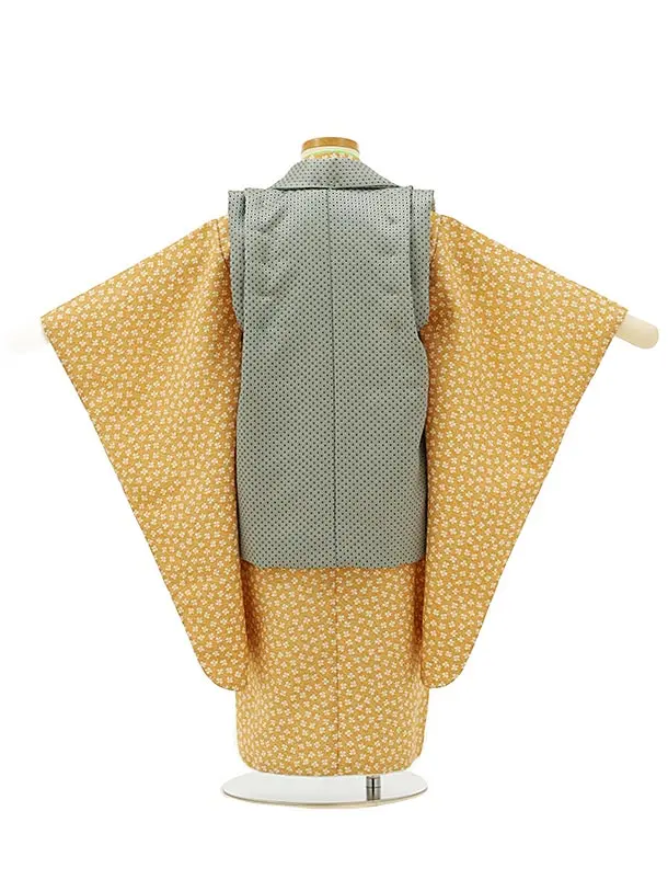 七五三レンタル(3歳男児被布)2796グレー地刺繍かぶとxからし色