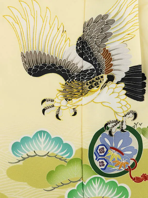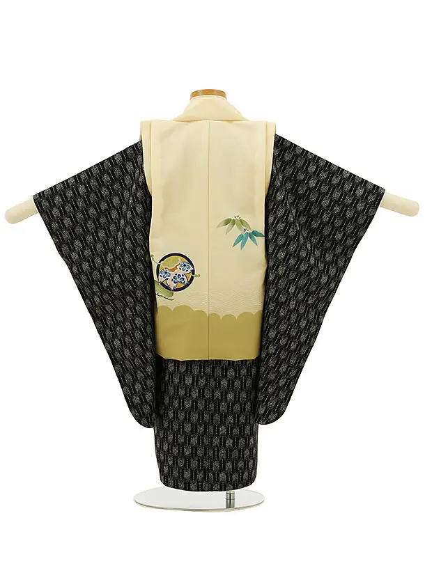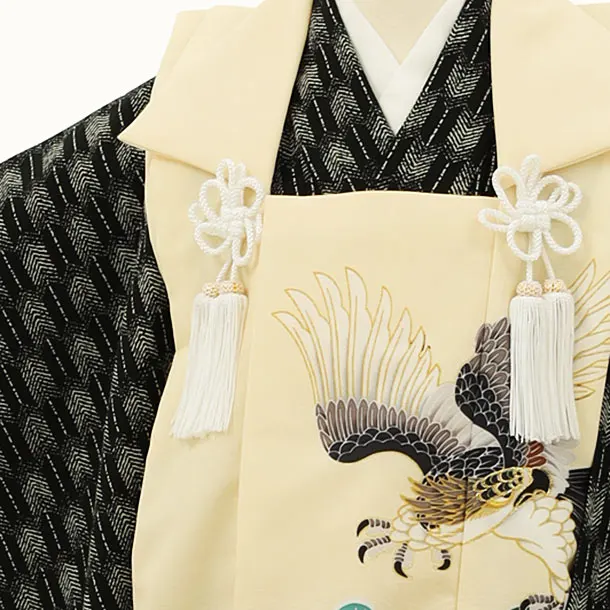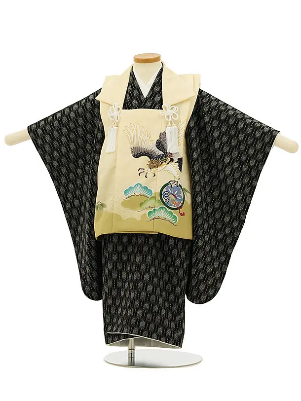七五三レンタル(3歳男児被布)2798クリーム地松鷹x黒小紋