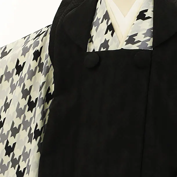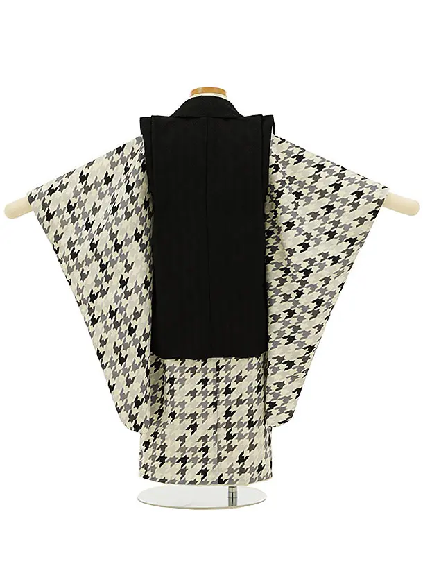七五三レンタル(3歳男児被布)2801黒x白グレー千鳥格子