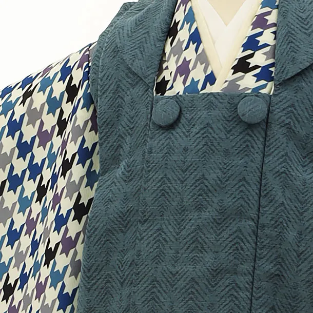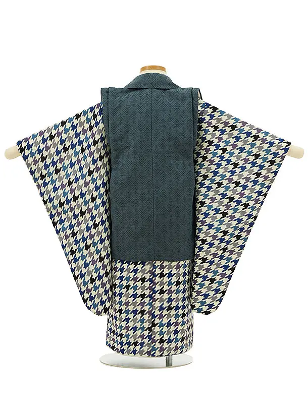 七五三レンタル(3歳男児被布)2802ブルーグレーx白ブルー千鳥格子