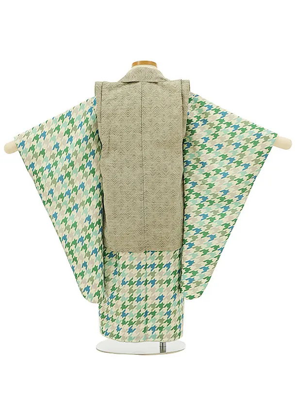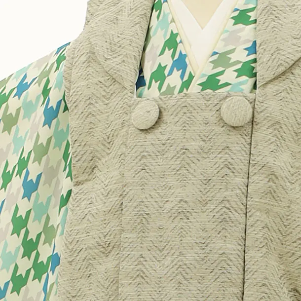 七五三レンタル(3歳男児被布)2803グレージュx白グリーン千鳥格子