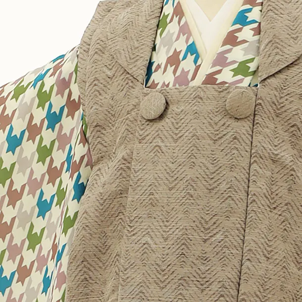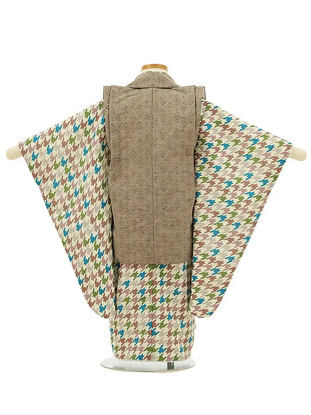 七五三レンタル(3歳男児被布)2804ブラウンベージュx白ブラウン千鳥格子
