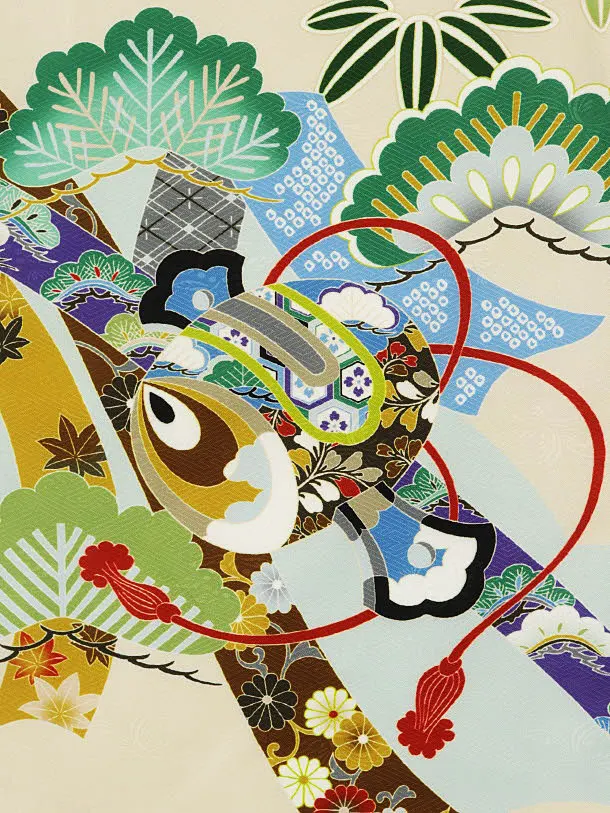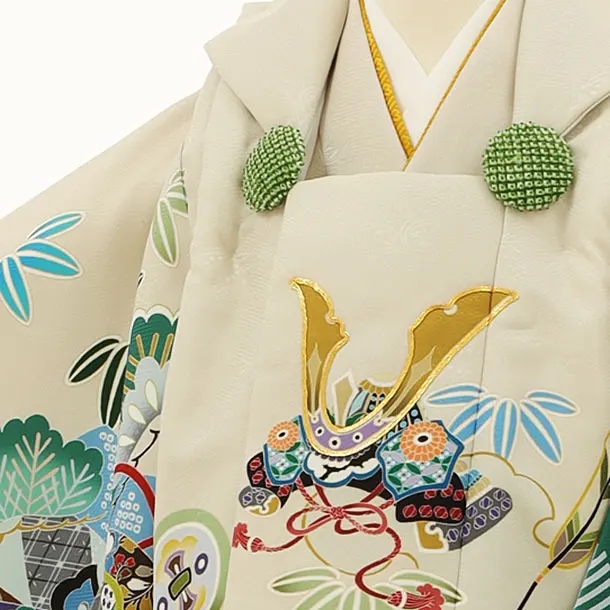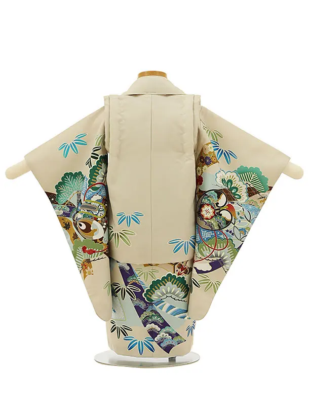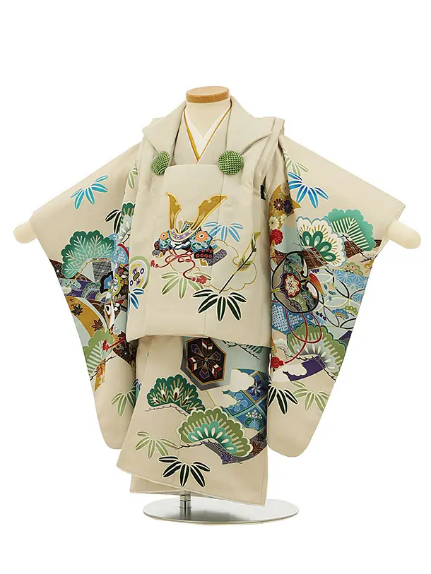 七五三レンタル(2歳男児被布)2807ベージュ兜xベージュ吉祥文様