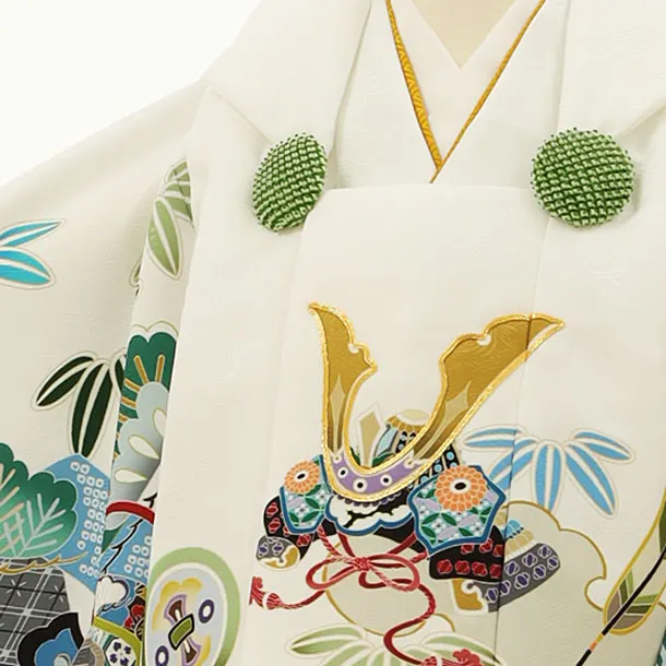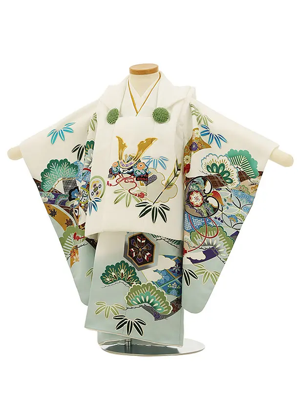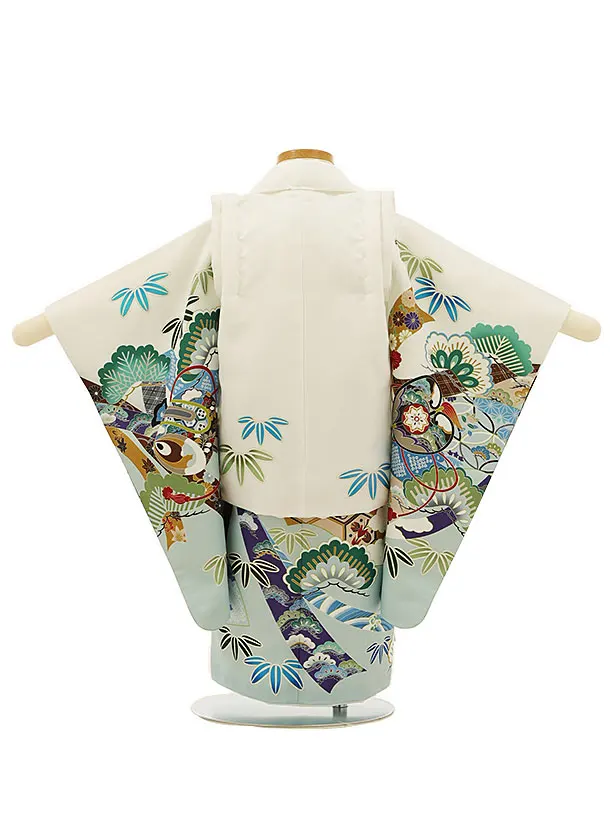 七五三レンタル(2歳男児被布)2809白兜x白ぼかし吉祥文様