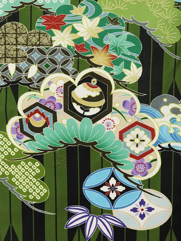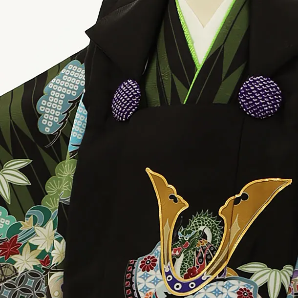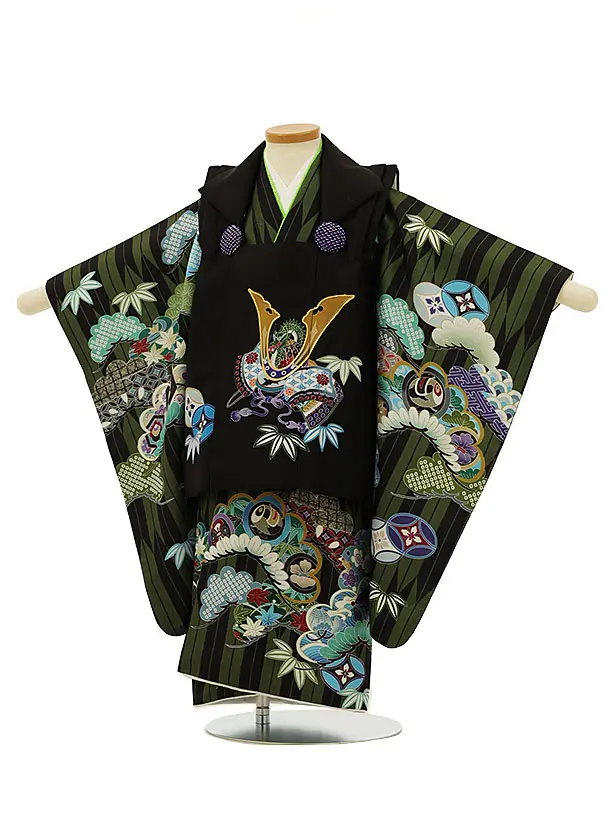 七五三レンタル(3歳男児被布)2820黒兜xグリーン黒矢羽根吉祥文様