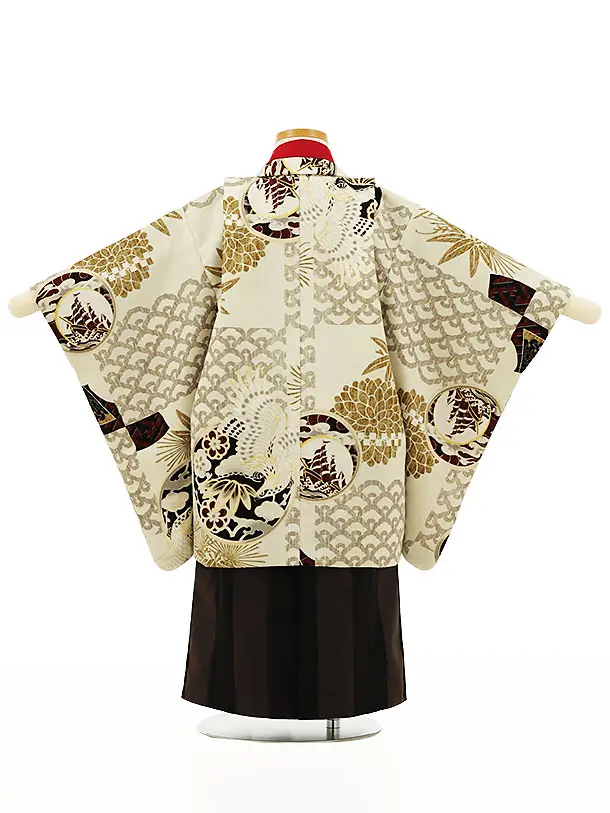 かんたん七五三(3歳男袴)2827JAPANSTYLEベージュ地青海波丸紋鷹