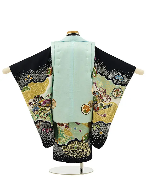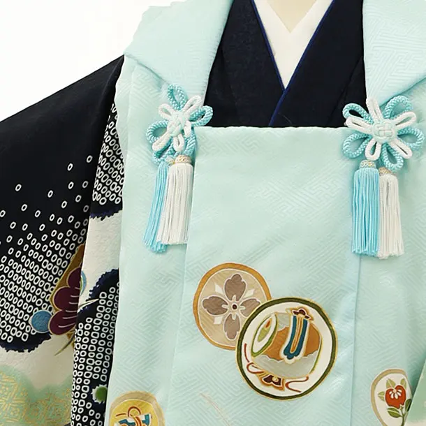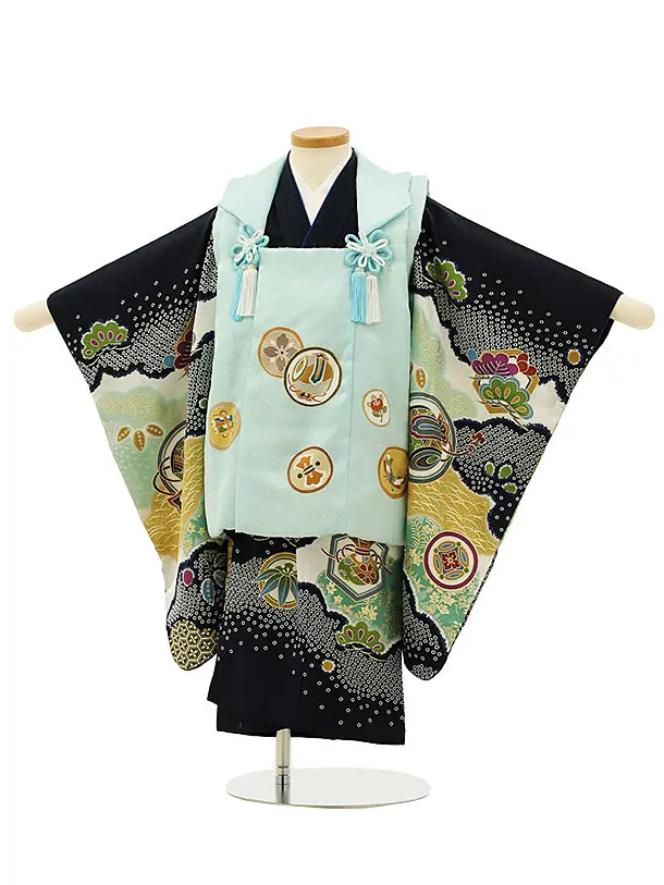 七五三レンタル(3歳男児被布)正絹 2830水色丸紋x紺地雲取り丸紋