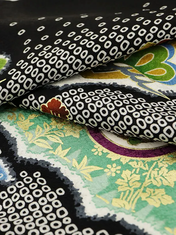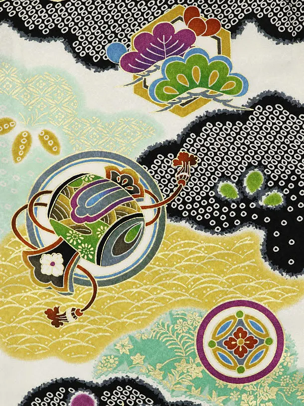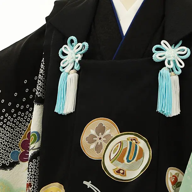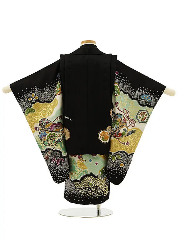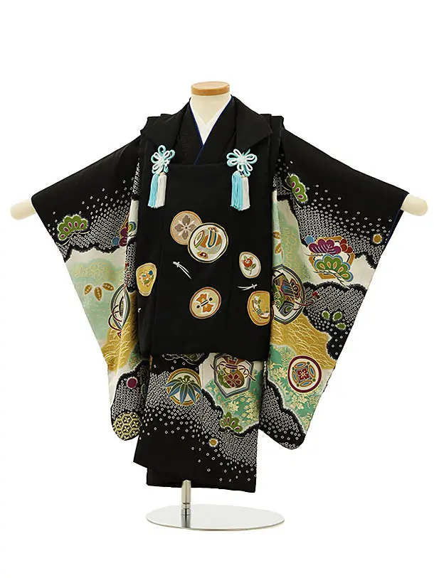 七五三レンタル(3歳男児被布)正絹 2833黒地丸紋x黒地雲取り丸紋