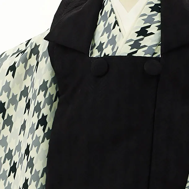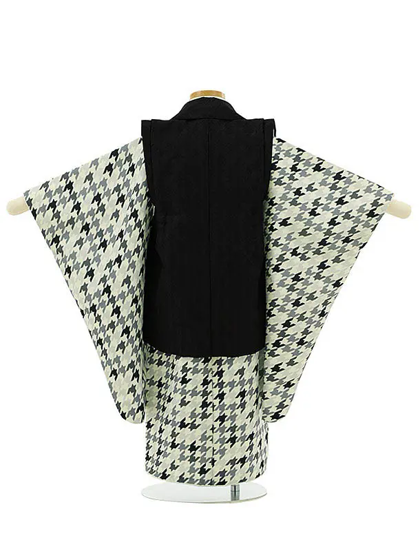 七五三レンタル(3歳男児被布)2835黒x白グレー千鳥格子