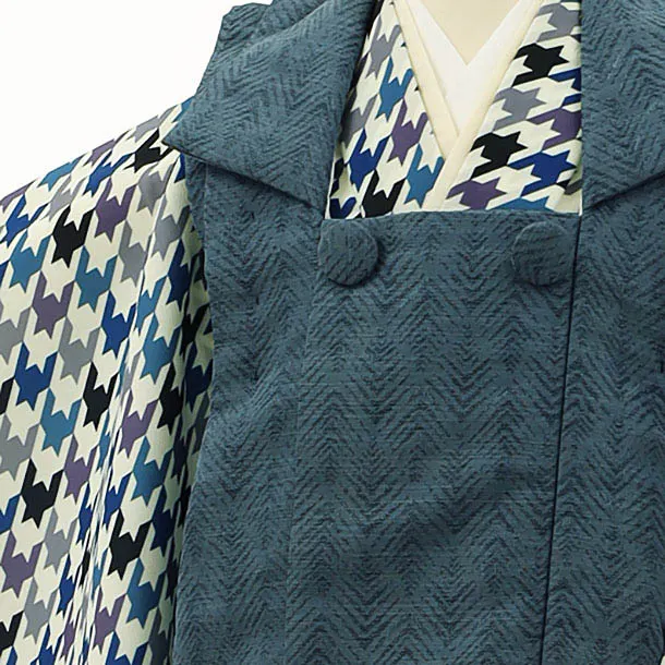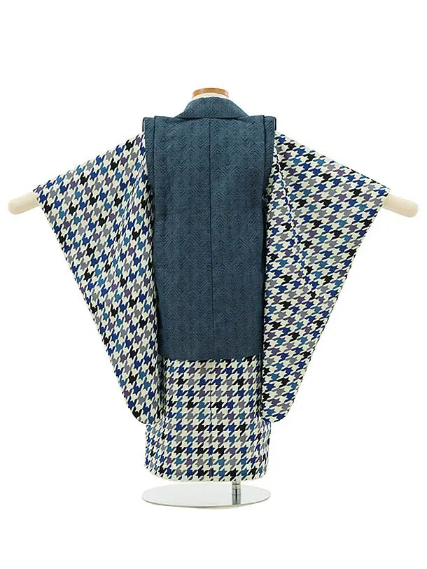 七五三レンタル(3歳男児被布)2837ブルーグレーx白ブルー千鳥格子