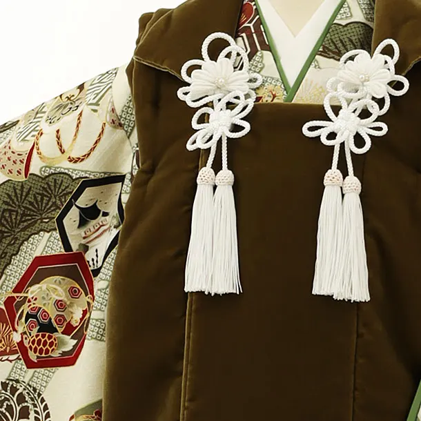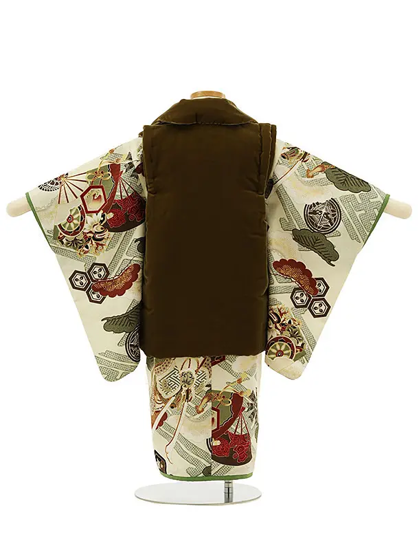 七五三レンタル(3歳男児被布)2838華徒然ベルベット茶xアイボリー松兜